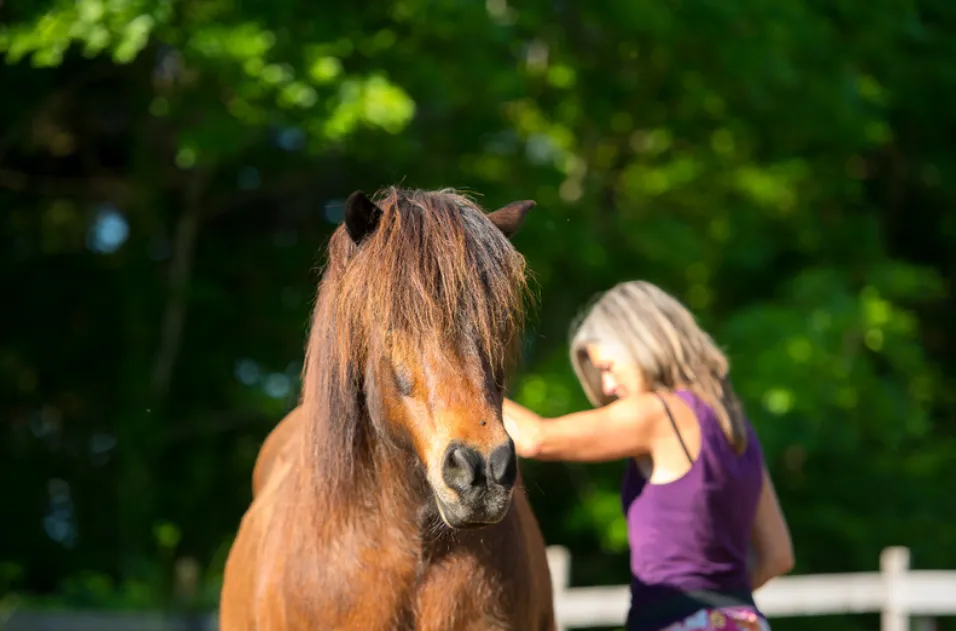 Du brauchst keine Pferdeerfahrung, ich führe Dich langsam und sicher ans Pferd ran.